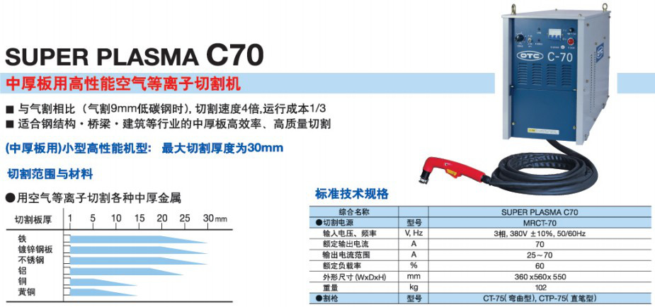 OTC(歐地希)SUPER PLASMA C70中厚板用高性能空氣等離子切割機(jī)